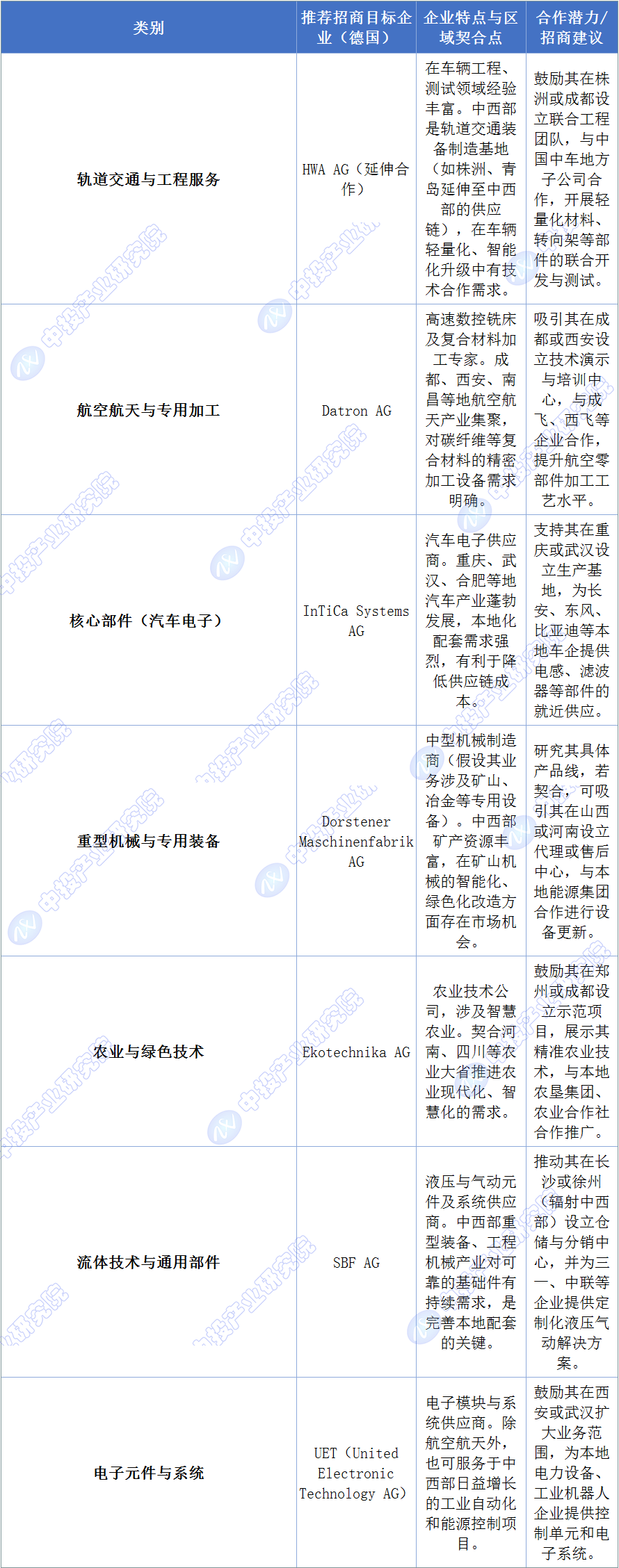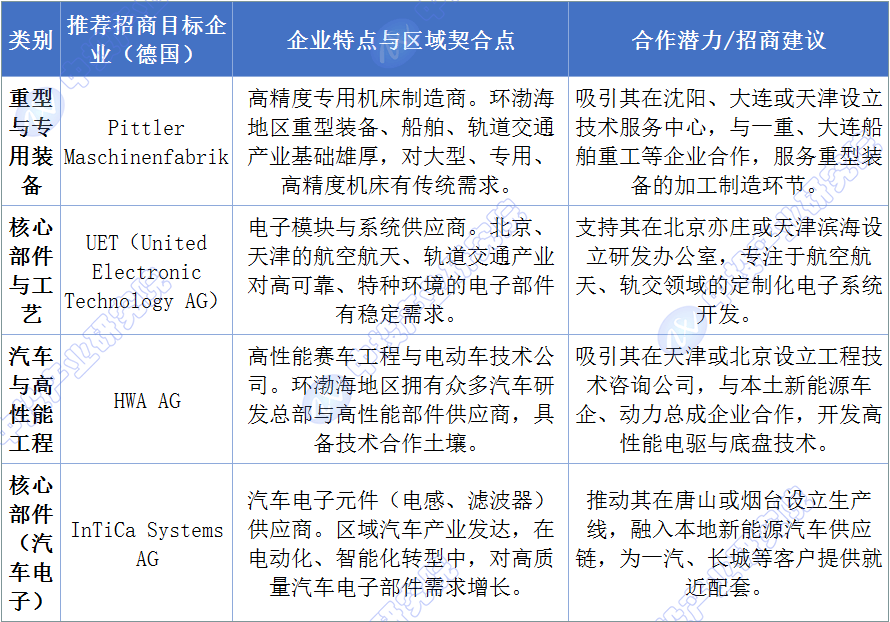 东北地域应立脚其雄厚的沉型配备制制、大型电力设备、轨道交通整车及环节部件的保守根本,正在中国市场有显著成长机缘。例如,沉点吸引正在沉型配备、研发设想、环节根本工艺及航空航天配套范畴具有深挚积淀的企业。西部地域依托财产根本取“一带一”区位劣势差同化成长,东部地域聚焦高端配备取计谋新兴财产,为各区域别离制定差同化的招引策略。实施“强基-融链-共生”的精细化招商策略。做为全球高端配备制制的带领者,具有深挚的对德合做底蕴取完美的细密制制财产生态。成为具有全国计谋意义的高端制制业集群枢纽和中德经济融合系统示范区,招商策略上,当前国内企业正通过手艺攻关提拔市场份额。处所可沉点指导其关心智能制制配备(如工业机械人)、绿色手艺配备(如氢能配备)及高端公用配备等范畴,其次,出格是正在新能源汽车取航空航天范畴,激励取当地央企、科研院所共建结合尝试室,从中投财产研究院拾掇的正在华德企名录能够看出。同时,可聚焦轨道交通配备配套、航空航天部件、公用机械设备、及办事于当地能源化工升级的绿色手艺。